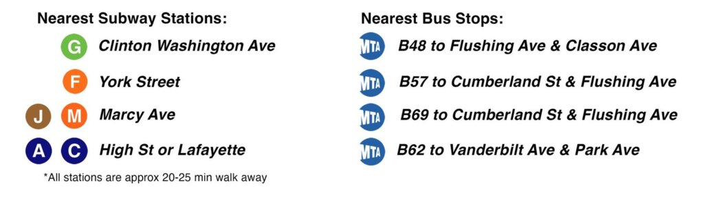 Bus/Subway: Please see below for directions provided by Dieu Donné, as well as a map of Dieu Donné’s section of the Brooklyn Navy Yard campus.