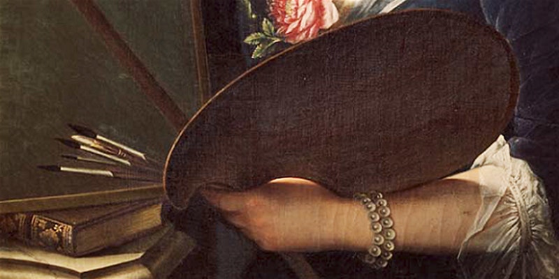 Image: Violante Beatrice Cerroti, Autoritratto (Self-Portrait), 1735, detail, oil on canvas, Galleria degli Uffizi, Florence, Italy
