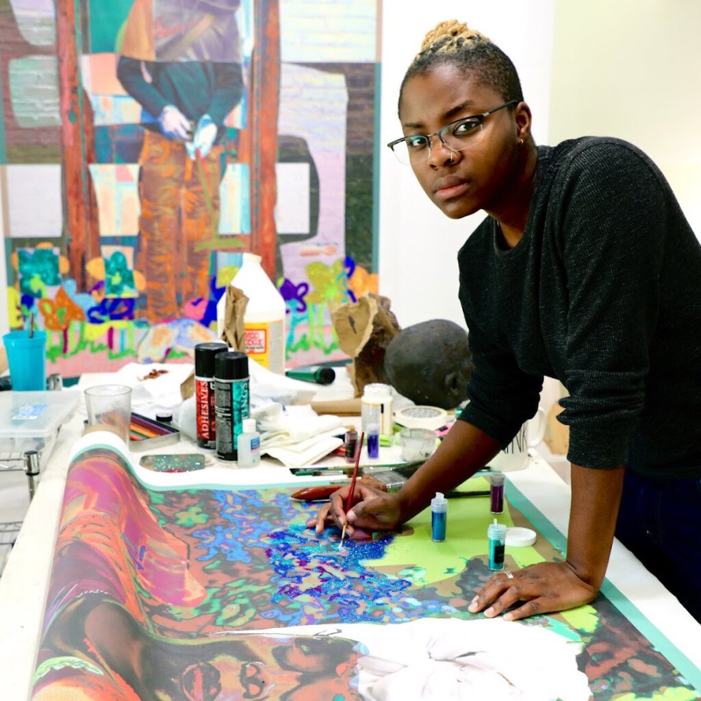 Amani Lewis is a Miami-based artist, known for their powerful explorations of identity, community, and social justice. Amani holds a BFA from the Maryland Institute College of Art (MICA), where they graduated in 2016 with a focus on painting and printmaking. Amani has been featured in several prominent exhibitions, including “Amani Lewis: Subjective Nature” at the August Wilson African American Cultural Center in Pittsburgh, “It’s from the light that we are found, blessed and guided” at Lévy Gorvy Dayan (2021), “Amani Lewis: Nothing Remains the Same” at Salon 94, and “Unapologetic WomXn” at The Venice Biennale in 2024. Their work often combines vibrant color, photography, and mixed media to challenge narratives around marginalized communities. Amani’s work has been extensively covered by publications such as Hyperallergic, Juxtapoz, and The New York Times, which have praised their ability to combine social activism with artistic expression. As co-founder of Artist First Collective, Amani is dedicated to advocating for artist-friendly business models, ensuring transparency, and providing resources that support artists in their studio practices.