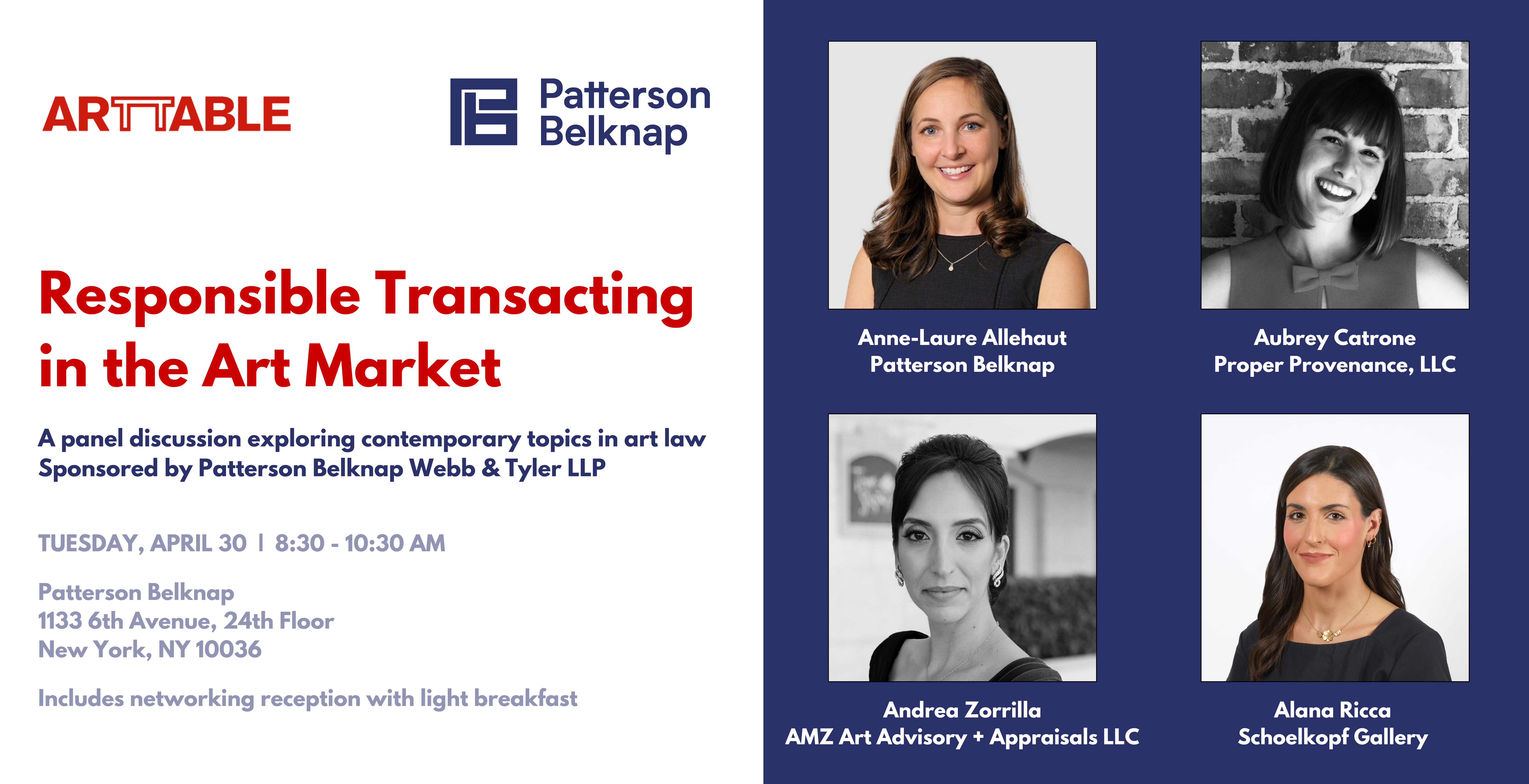 Our sincere thanks to Samantha Anderson of the Art Law Group at Patterson Belknap Webb & Tyler LLP and Andrea Zorrilla of AMZ Art Advisory + Appraisals LLC for coordinating this event.