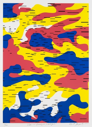 Image: MARÍA ELENA GONZÁLEZ (b. 1957). Camo (Boogie Woogie), 2015. Silkscreen, 25 3/4 x 16 1/2 in. Signed, dated, and inscribed (at lower left): 4/20; (at lower center): “Camo Boogie Woogie”; (at lower right): M. E. González 2015.