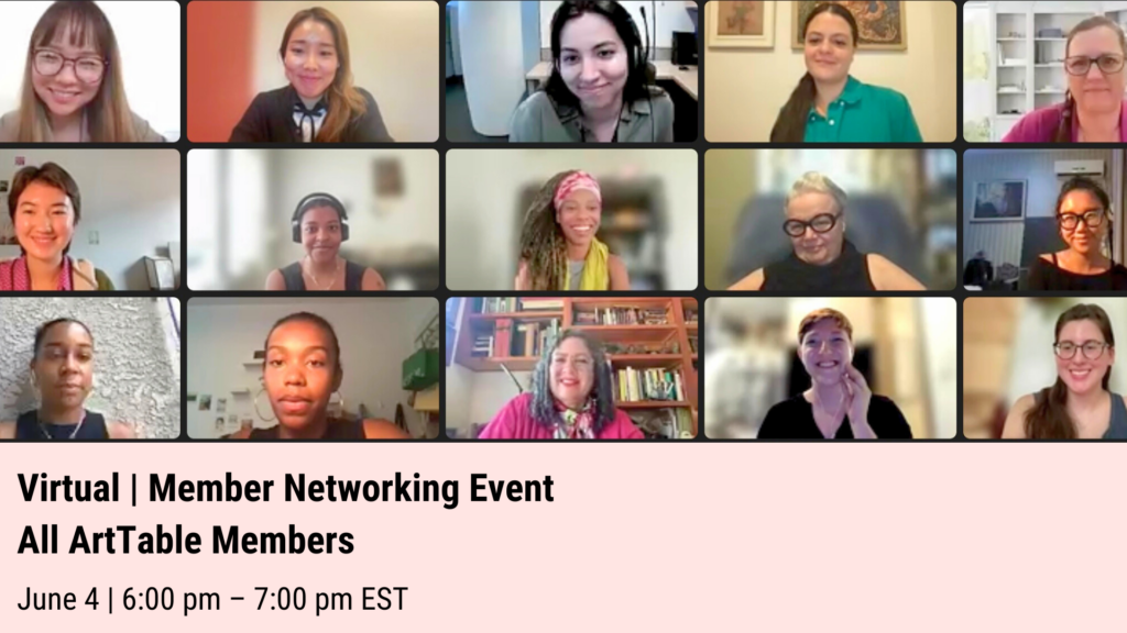 All ArtTable Members are invited to a Virtual Networking Event on June 4, at 6:00 PM EST/3:00 PM PST.